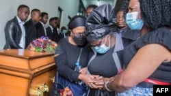 Члены семьи выглядели подавленными, когда проходили мимо гроба с телом Лемекани Ньиренды в Баптистской церкви Лусаки, где 23-летний мужчина был обычным прихожанином до переезда в Россию для изучения ядерных технологий.