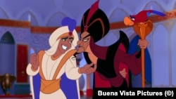 Критики картины советует обратить внимание на акценты героев фильма. Главные положительные персонажи – Аладдин и принцесса Жасмин – несмотря на свое ближневосточное происхождение, говорят с вполне американским акцентом. В то же время большинство отрицательных персонажей – стражи и, в особенности, визирь Джафар – являются обладателями подчеркнутого арабского акцента.