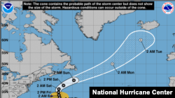 Шторм создает опасные условия в водах от Багамских островов на юге до Канады на севере.