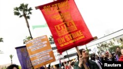 Сотрудники школьного округа Лос-Анджелеса, а именно водители автобусов, охранники, ассистенты учителей, работники столовых, более 30 тысяч человек, требуют повышения зарплаты на 30%, и увеличения часов работы.