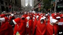 Протест: Неудивительно, что образы сериала, ставшего лауреатом многих кинопремий, были взяты на вооружение сторонниками феминизма. Красно-белые наряды надевали участники Женского марша в США, аргентинские и ирландские активисты, выступавшие за право женщин на аборты, и многие другие.