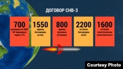 Согласно условиям договора СНВ-3 стратегические арсеналы США и России включают не более одной тысячи пятисот пятидесяти развернутых ядерных боеголовок и 700 развернутых систем доставки.