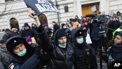 У здания Верховного суда в центре Москвы собралась небольшая группа людей, поддерживающих организацию в ходе процесса. Они скандировали «позор».