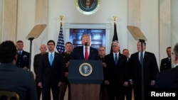 Осудив Иран за терроризм и анонсировав новые экономические санкции, Трамп, как отмечает корреспондент «Голоса Америки» Стив Херман, выступил в сдержанном тоне – особенно учитывая, что заявление было сделано несколько часов спустя после ракетного обстрела американских военных в Ираке.