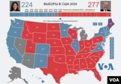 Соперница Трампа по выборам, кандидат от демократов Камала Харрис, получила 224 голоса выборщиков.